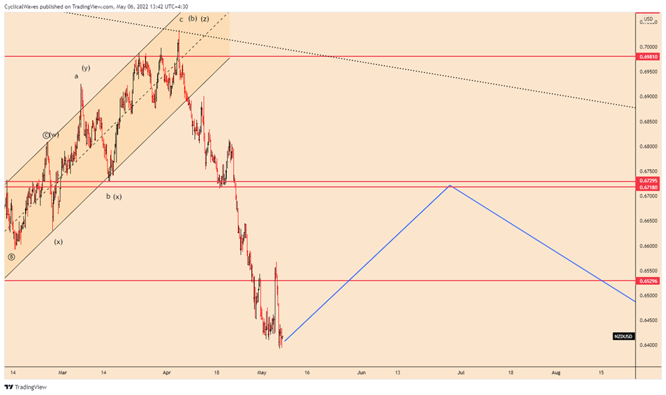 به نظر می رسد یک اصلاح پیچیده در جریان است و قیمت در قالب موج Y از 2 عازم تارگت ما یعنی 0.67 می باشد. قبل از رسیدن به 0.67، به نظر می رسد یک اصلاح صعودی رو به بالا از کف کانال روسی اش داشته باشد.
