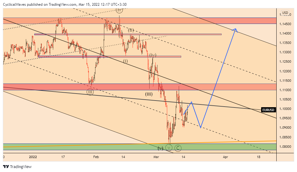 مطابق با تحلیل پیشین، در موج 5 شاهد شکسته شدن کف اخیر بودیم. به نظر می رسد در آخرین ریزموج های موج بزرگ C باشیم و بزودی رالی صعودی یورو شروع بشود. عبور قیمت بالای 1.148 و یا شکسته شدن کانل نزولی تریگر خرید بلندمدتی است.. در صورتی که یک مدل الگوی 123 شکل بگیرد، خرید مجاز می شود.