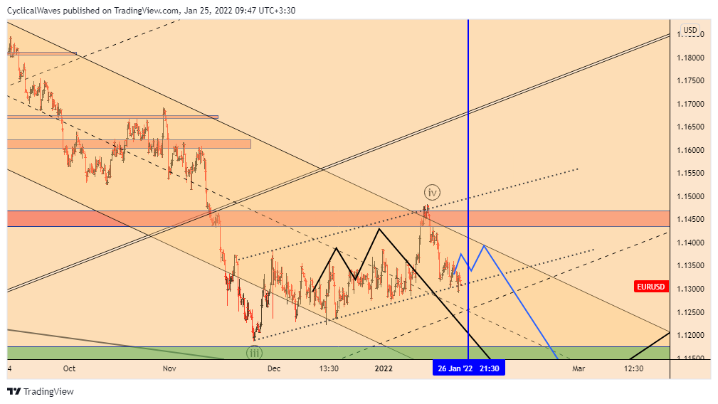 مطابق با تحلیل پیشین، از محدوده سقف کانالها و نیز محدوده مقاومت ایستا، فروشندگان با قدرت برگشته و آغاز موج 5 را نوید داده اند. فعلاً فروش های سبک داریم تا محدوده 1.10 که پایان احتمالی موج 5 از C خواهدبود.