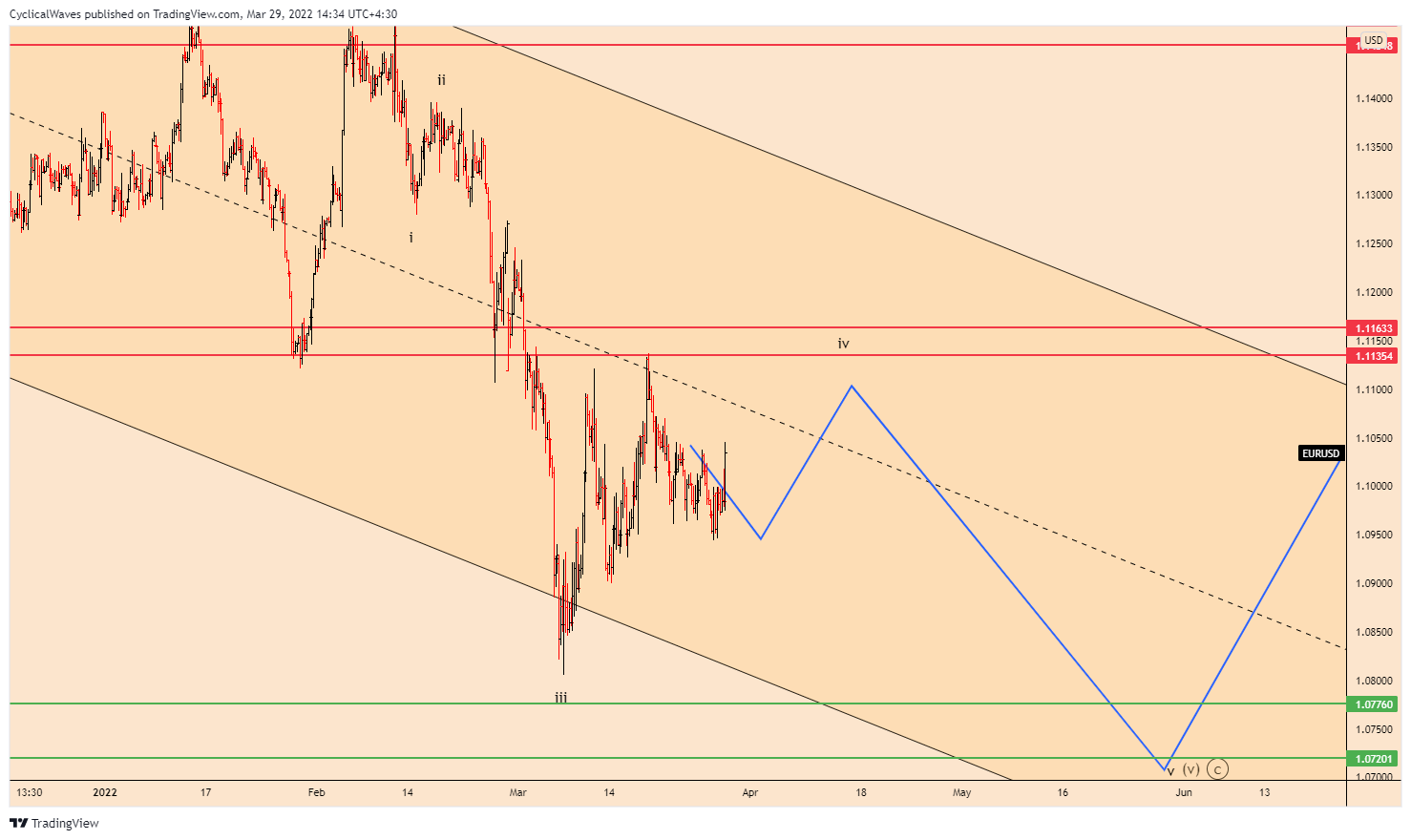 مطابق با تحلیل پیشین، در موج 5 شاهد شکسته شدن کف اخیر بودیم. به نظر می رسد در آخرین ریزموج های موج بزرگ C باشیم و بزودی رالی صعودی یورو شروع بشود. عبور قیمت از سطح 1.148 تریگر خرید بلندمدتی است.