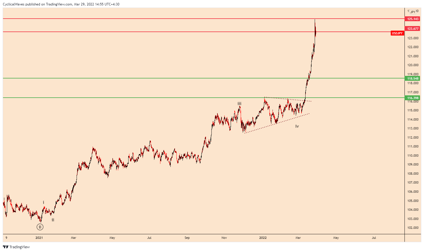 تارگت پیشین ما در سطح 120 محقق شد و به نظر می رسد هم اکنون در یک موج 5 پرقدرت هستیم. از دید فیبوناچی، تارگت 130 در صورت عبور قیمت از مقاومت ایستای کنونی محتمل به نظر می رسد.
