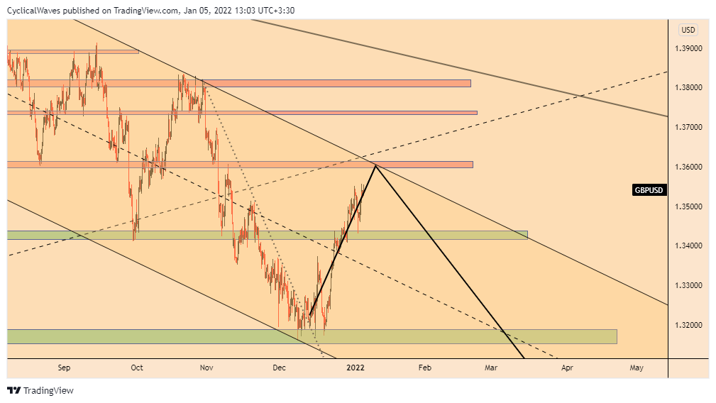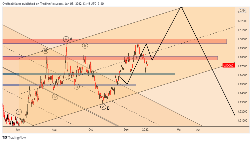 مسیر موردنظر روی چارت ترسیم شده است. در صورتی که کانال نزولی به بالا شکسته بشود، اصلاح چندین ماهه نزولی را بایستی پایان یافته تلقی کرد. سناریوی محتمل تر این است که یک دور دیگر نزول اصلاحی تا محدوده 1.275 داشته باشد و سپس روند اصلی صعودی دوباره آغاز بشود.