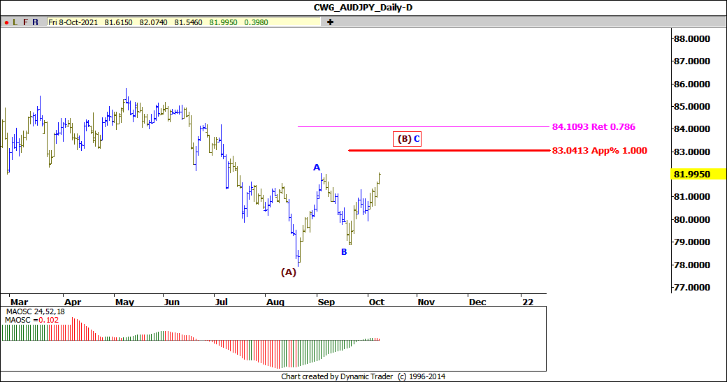 پس از یک ریزش قوی اولیه، قیمت در حال اصلاح به صورت ترکیب ABC می باشد. مقاومت کوتاه مدتی پیش روی این جفت ارز محدوده 83-84.1 می باشد در محدوده مورد نظر انتظار تشکیل یک سقف داریم.