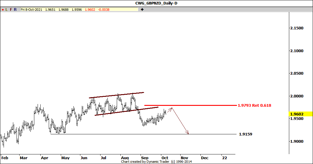پس از شکسته شدن کانال صعودی، بنظر میرسد شرایط برای ریزش مهیا شده باشد. مقاومت پیش روی نمودار 1.979 و هدف کاهش 1.916 می باشد.