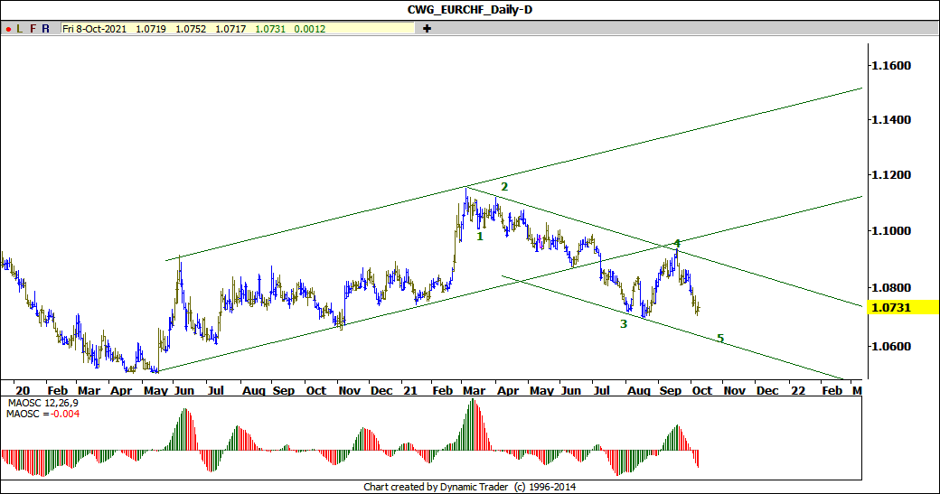 قیمت پس از شکستن کانال صعودی بلند مدتی وارد یک کانال نزولی شده است. بنظر می رسد برای کوتاه مدت هدف کلیدی کاهش 1.06 می باشد و هر چه به محدوده مورد نظر نزدیک شود جذابیت خرید افزایش خواهد یافت.