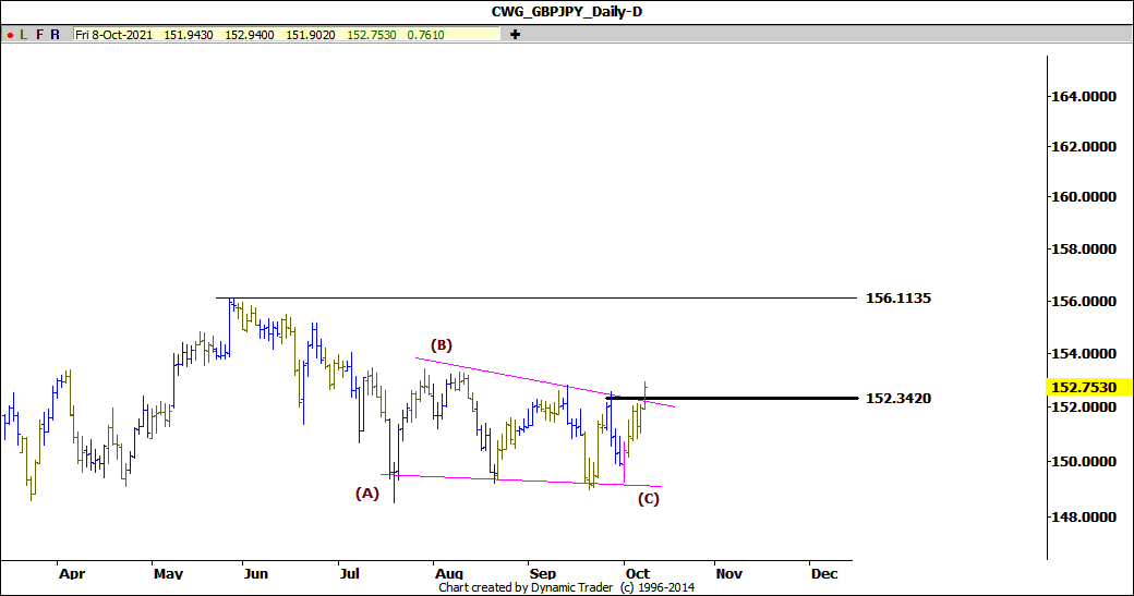 بنظر می رسد قیمت که در چند وقت اخیر در یک تراکم قوی در نوسان بوده است عزمی برای شکست ایجاد شده. تثبیت هفته جاری قیمت فراتر از 152.3 می تواند زمینه رشد تا 156 را فراهم کند.