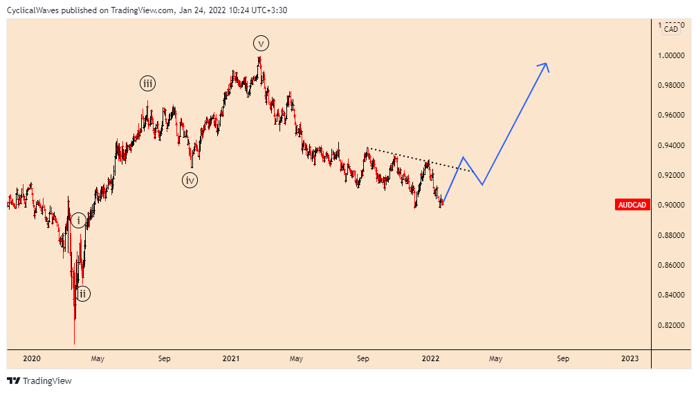 بعد از پایان یک 5-موجی قدرتمند نزولی، انتظار وقوع یک اصلاح 3-موجی رو به بالا را داریم.