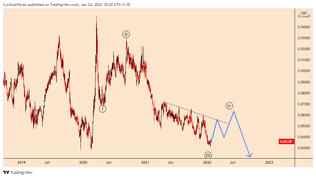 یک 5-موجی بزرگ از مارس 2020 تکمیل شده و یک اصلاح نزولی عمیق در پیش خواهیم داشت. تارگت های اصلاح نزولی 147.4 و در صورت شکسته شدن این حمایت 141.7 هستند. تارگت بلندمدتی این نماد حدود 185 است.